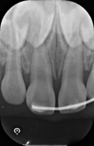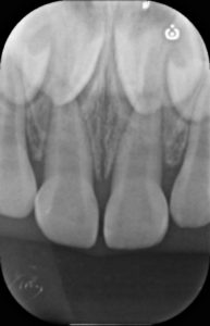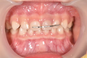 乳歯の形態には異常はなく、打った歯の位置が変わっているため元の位置に整復し、ワイヤーで固定を行います。